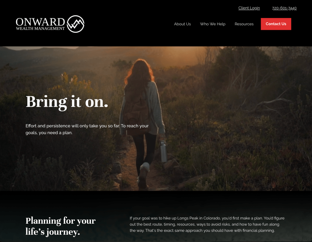 We partner with financial advisors located across the country, many of whom are newly independent having left a wirehouse where all of their branding was predetermined. Establishing a brand for your independent practice from scratch can feel overwhelming. Through in-depth conversation and thought-provoking questions, we’ll uncover what makes you unique and create messaging that not only activates a fully-realized brand experience, it also captivates and motivates prospective clients.